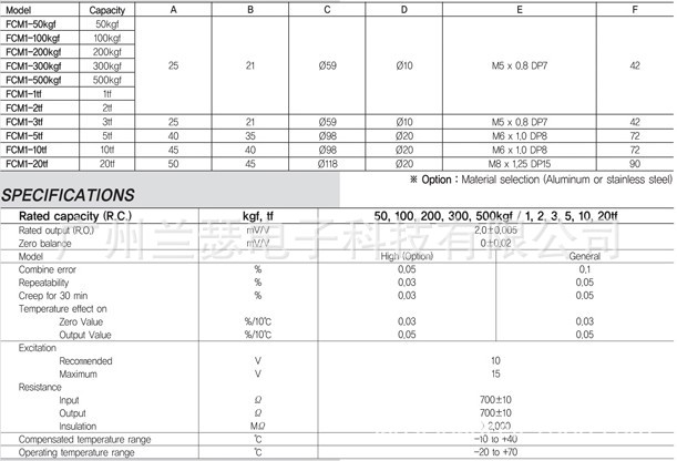 韓國Fine稱重傳感器FCM1 FCM2 FCM3 FCM4-50KG 所有型號: