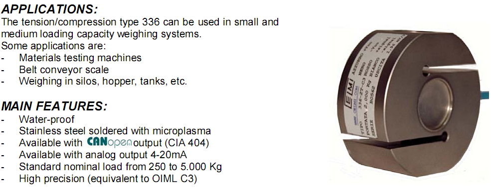 意大利CELMI拉伸/壓縮負荷細胞類型336可以在中小負荷能力稱重系統中使用,除了我們的標準產品,制鞋,自動化,包裝,起重機械,制藥,化工,航空航天,食品等行業,我們能夠提供幾乎每一個特殊的發展 - 適合您的個性化需求。