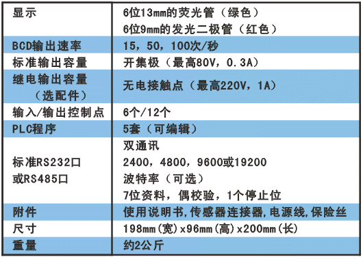 志美CHIMEI CB900P稱重顯示儀表規(guī)格: