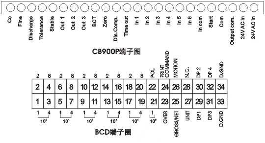 志美CHIMEI CB900P稱重顯示儀表接線圖: