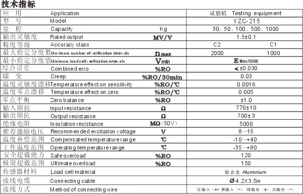 廣測GUANGCE YZC-215B輪輻式稱重傳感器技術指標: