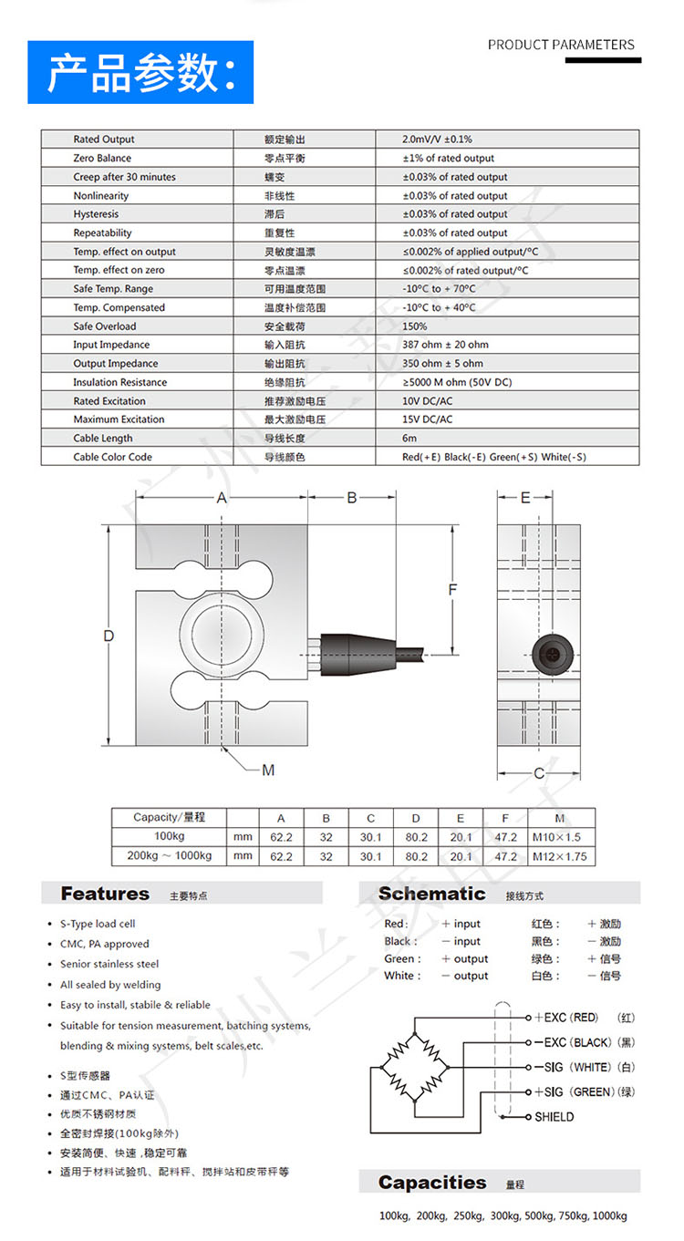 產品類型:S型稱重傳感器