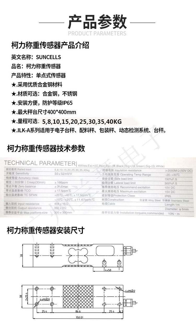 寧波柯力 ILK-35KG稱重傳感器產品參數: