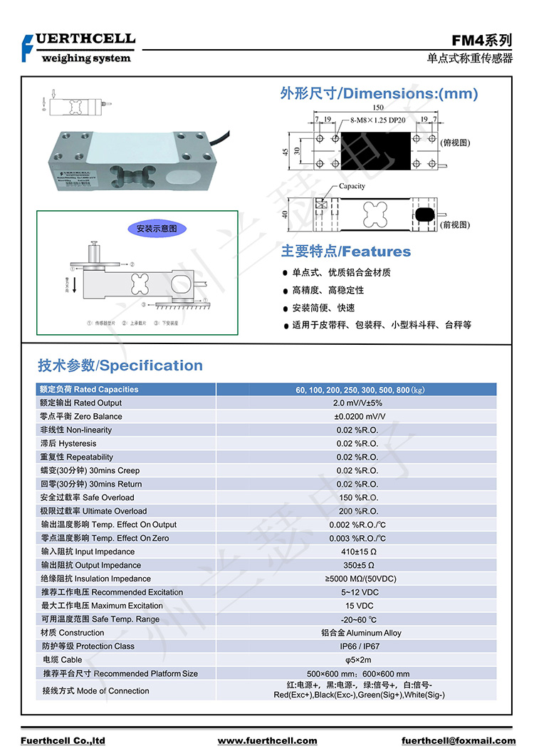 美國FUERTHCELL FM4-60KG稱重傳感器產(chǎn)品參數(shù):