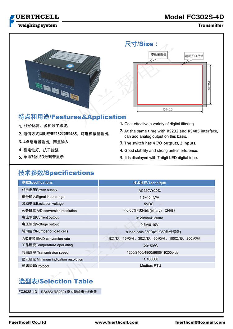 美國FUERTHCELL FC302S-4D稱重儀表產(chǎn)品參數(shù):