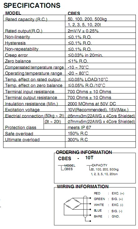CBES-50kg,CBES-50kg稱重傳感器,Bongshin CBES-50kg傳感器主要特性: