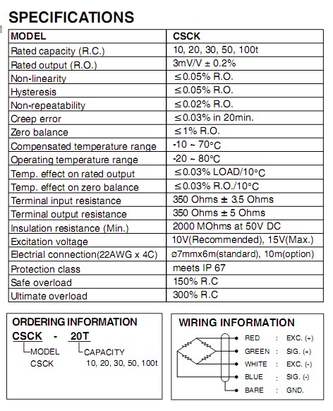 | Bongshin CSCK-10T,CSCK-20T,CSCK-30T,CSCK-50T,CSCK-100T稱重傳感器 |