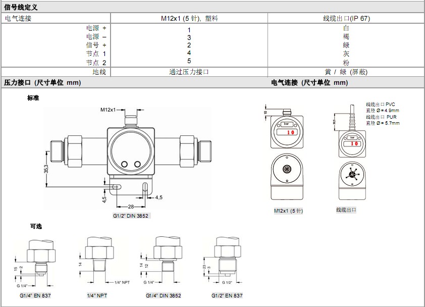 BD SENSORS 壓力變送器采用不同的傳感器技術(shù),結(jié)合不銹鋼和多種塑料殼體,適用于幾乎所有工業(yè)氣體和液體。我們的工業(yè)壓力變送器有多種電氣接口和壓力接口可供選擇,可滿足幾乎所有應(yīng)用需求。